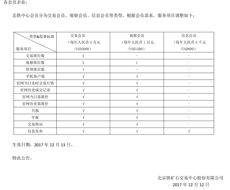 關于發布《北京鐵礦石交易中心鐵礦石現貨信息發布實施辦法(試行)》的公告