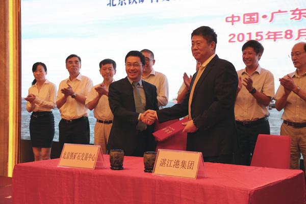 2015年8月28日,正值北京鐵礦石交易中心股份有限公司(簡稱“北鐵中心”)成立一周年之際,北鐵中心及湛江港(集團(tuán))股份有限公司(簡稱“湛江港集團(tuán)”)聯(lián)合舉辦中國鐵礦石現(xiàn)貨交易平臺(簡稱“平臺”)湛江論壇暨湛江港鐵礦石業(yè)務(wù)推介會。來自國家工業(yè)和信息化部(簡稱“工信部”)、交通運輸部(簡稱“交通部”)、湛江市政府、中國鋼鐵工業(yè)協(xié)會(簡稱“中鋼協(xié)”)、中國五礦化工進(jìn)出口商會(簡稱“五礦商會”)的領(lǐng)導(dǎo)以及湛江市政府各部門、平臺會員企業(yè)、海關(guān)、邊檢、輪船公司等近100家單位的200余名代表出席了會議。