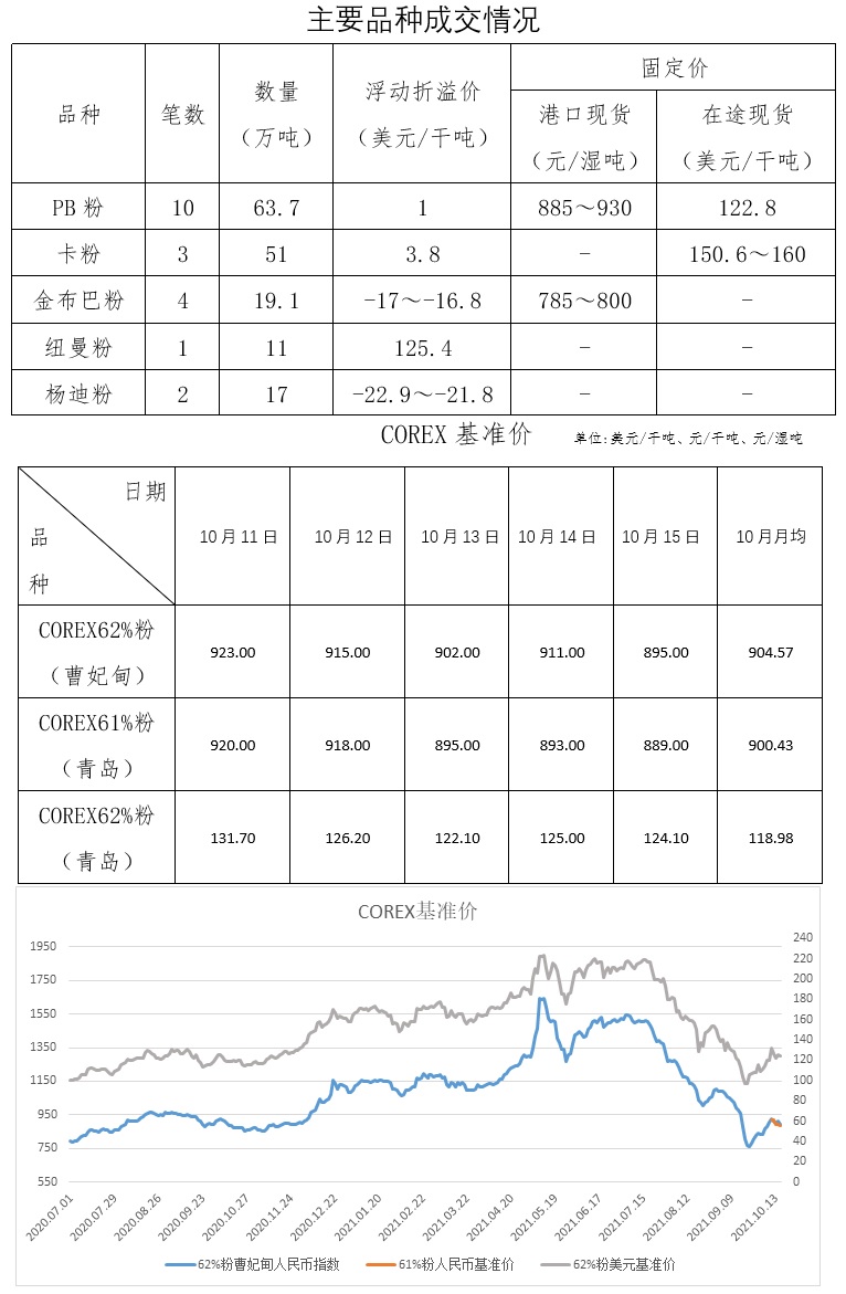 10月11日-10月15日成交30筆共192.26萬噸,其中在途13筆175萬噸,港口17筆17.26萬噸。
