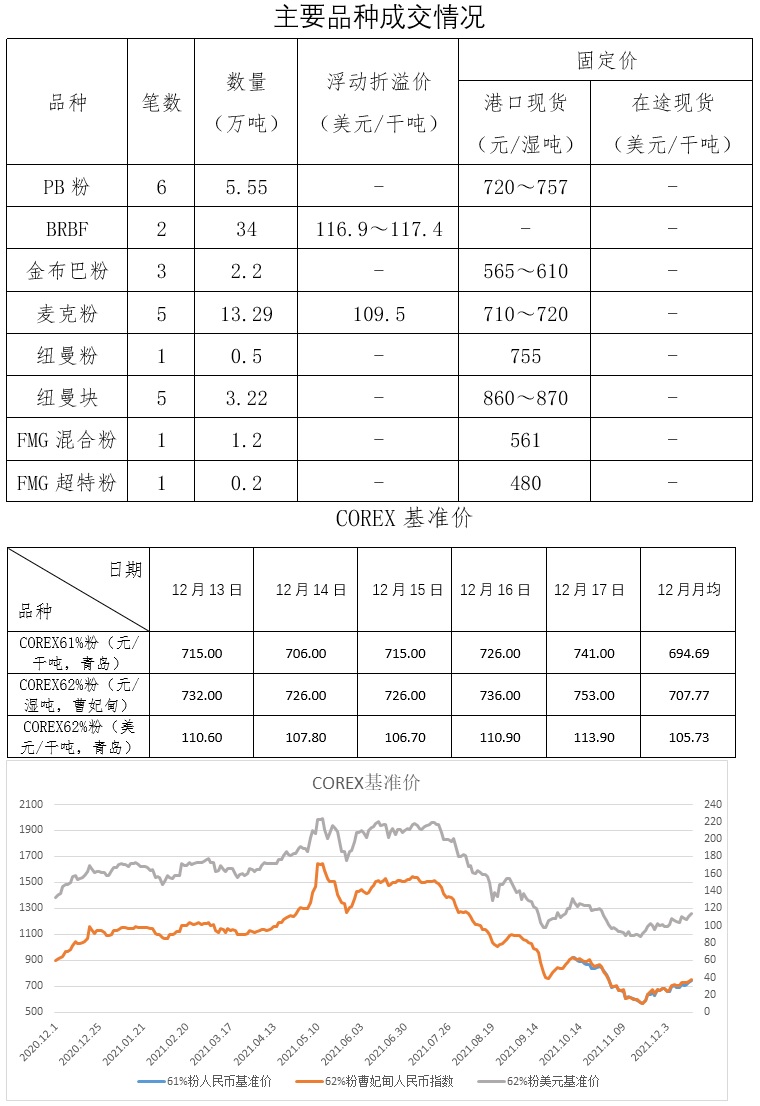 12月13日-12月17日成交39筆共72.46萬噸,其中在途3筆43萬噸,港口36筆29.46萬噸