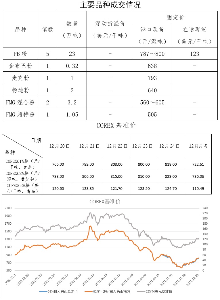 12月20日-12月24日成交20筆共43.37萬噸,其中在途1筆17萬噸,港口19筆26.37萬