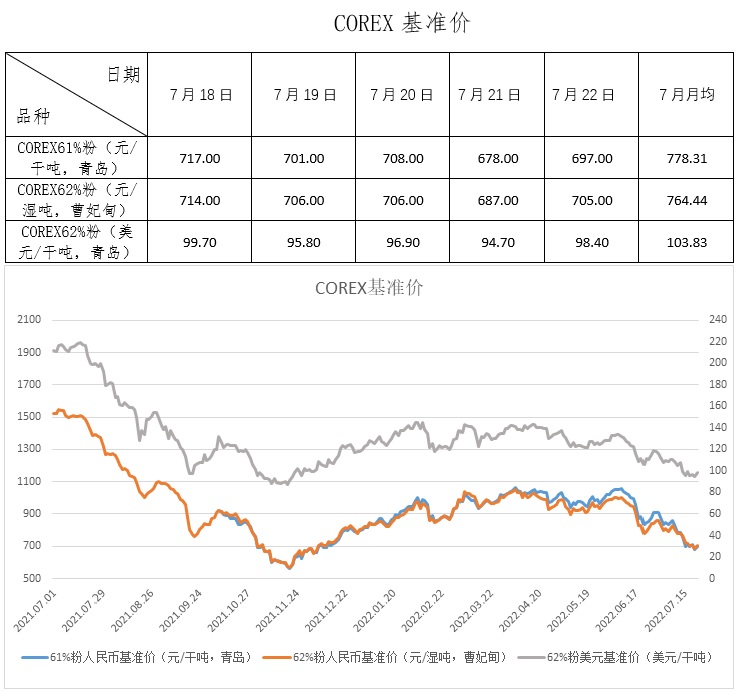 7月18日-7月22日成交74筆共149.24萬噸,其中在途6筆共90萬噸,港口68筆共59.24萬噸。主要成交品種包括:PB粉15筆共83.75萬噸,麥克粉11筆共10.29萬噸,FMG混合粉7筆共8.18萬噸,金布巴粉4筆共4萬。