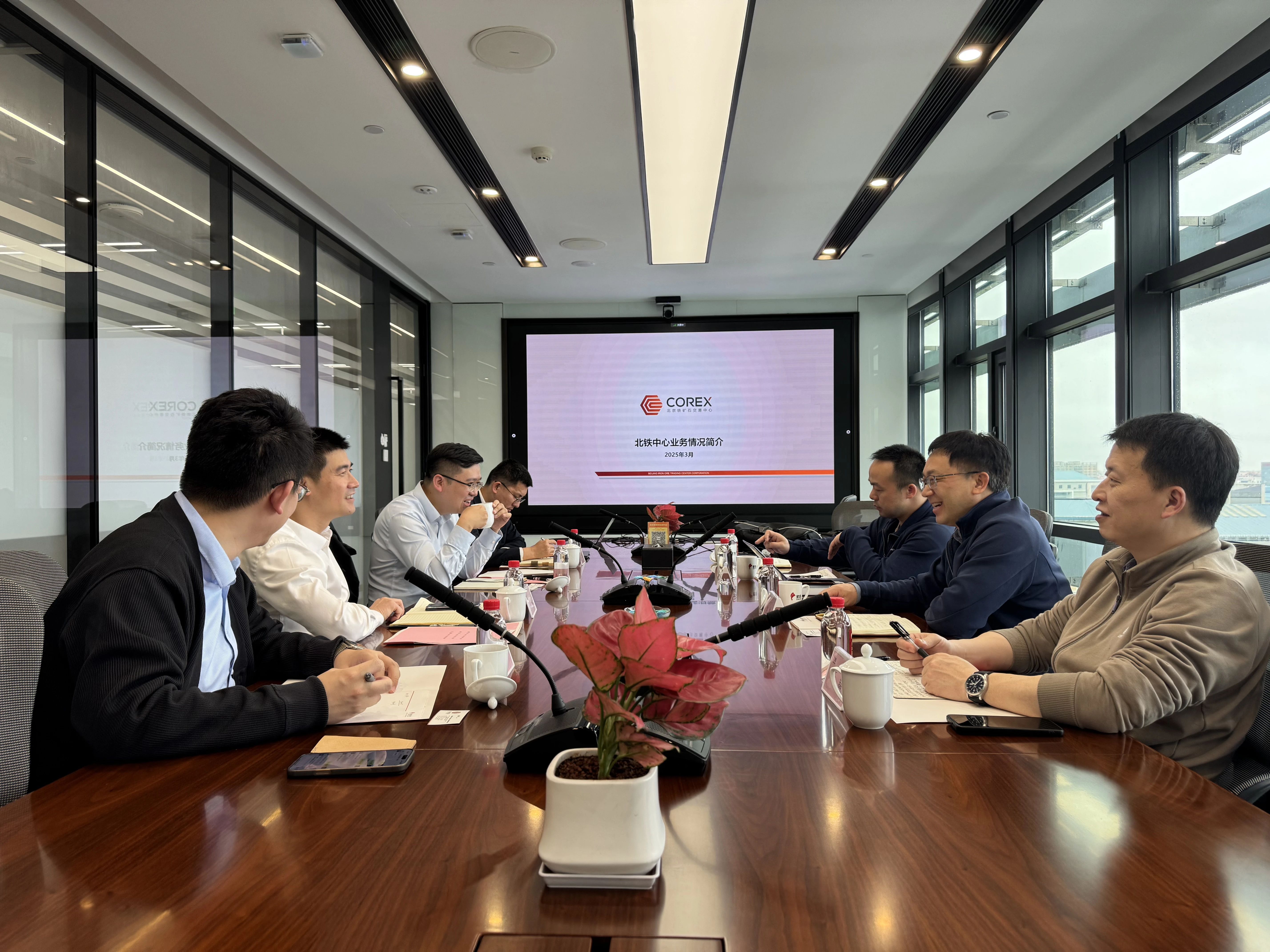 近日,北京鐵礦石交易中心(以下簡稱北鐵中心)執(zhí)行董事、總裁游松帶隊(duì)赴廈門國貿(mào)集團(tuán)股份有限公司(以下簡稱國貿(mào)股份)和廈門嶼豐礦產(chǎn)有限公司(以下簡稱嶼豐礦產(chǎn)),與國貿(mào)股份黨委委員、副總裁榮坤明,國貿(mào)股份鐵礦業(yè)務(wù)集群首席商務(wù)經(jīng)理、鐵礦資源采購部總經(jīng)理李鵬,廈門象嶼股份有限公司副總經(jīng)理鄭蘆魚,嶼豐礦產(chǎn)總經(jīng)理何玉龍等座談交流。北鐵中心副總裁、董事會秘書陸昊等參加會議。